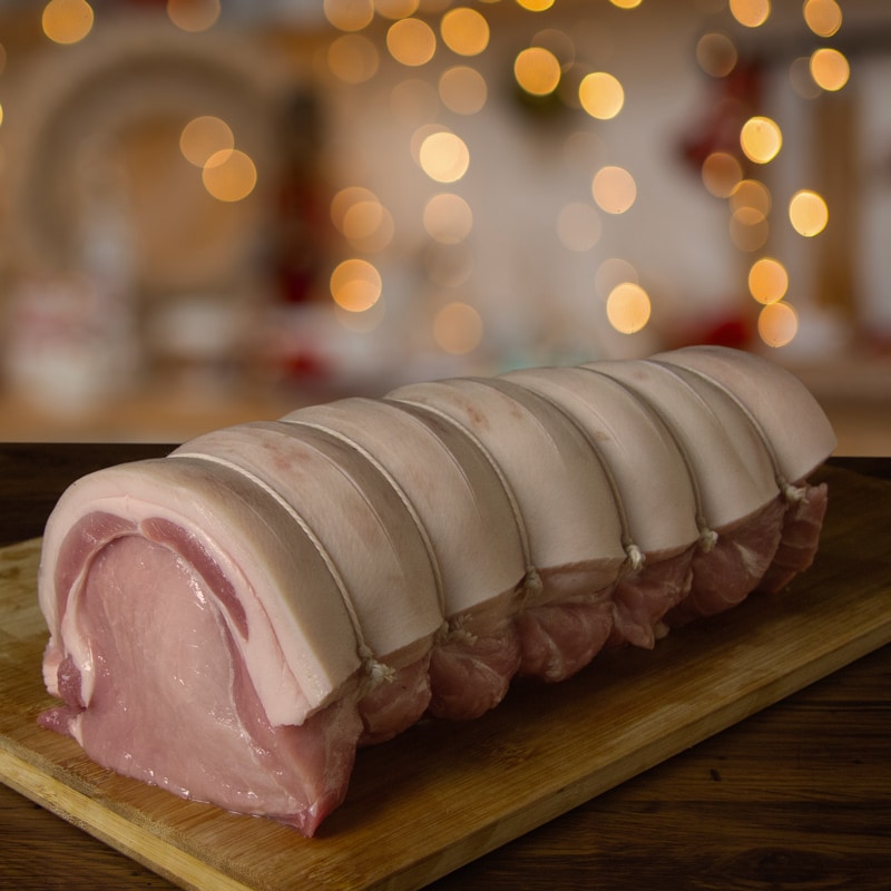 Crisp, Golden Crackling & Tender, Juicy Pork – this boneless loin joint is trimmed and rind-on for the ultimate roast dinner showstopper.