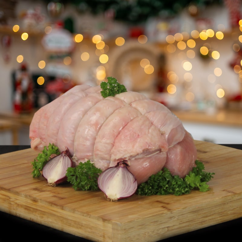 The Classic Christmas Centrepiece – lean, tender, and easy to carve, our Boneless Turkey Crown is the perfect choice for a traditional festive feast.