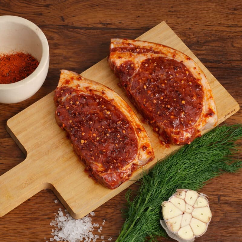 Cut from the pork loin and expertly trimmed, these boneless steaks are marinated in a rich BBQ glaze, giving you that perfect balance of smoky sweetness and savoury depth in every bite.